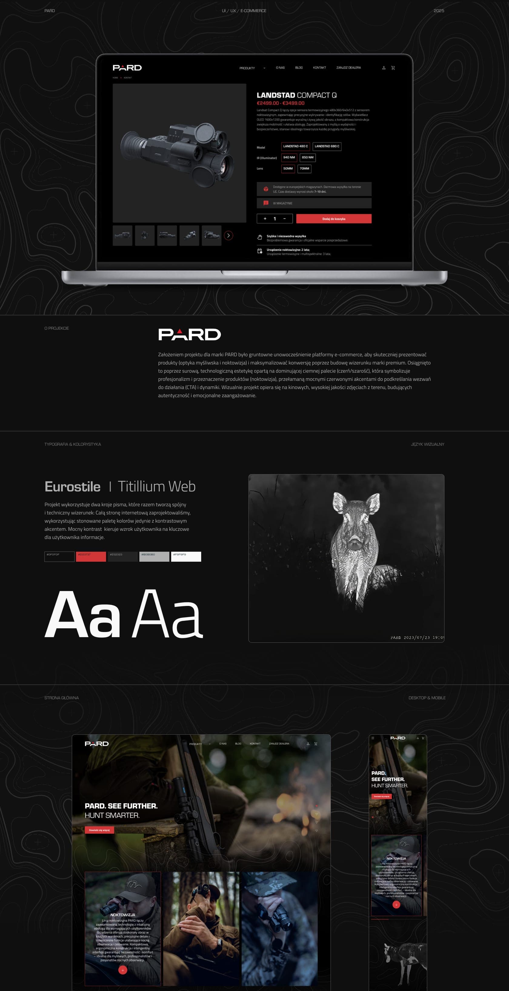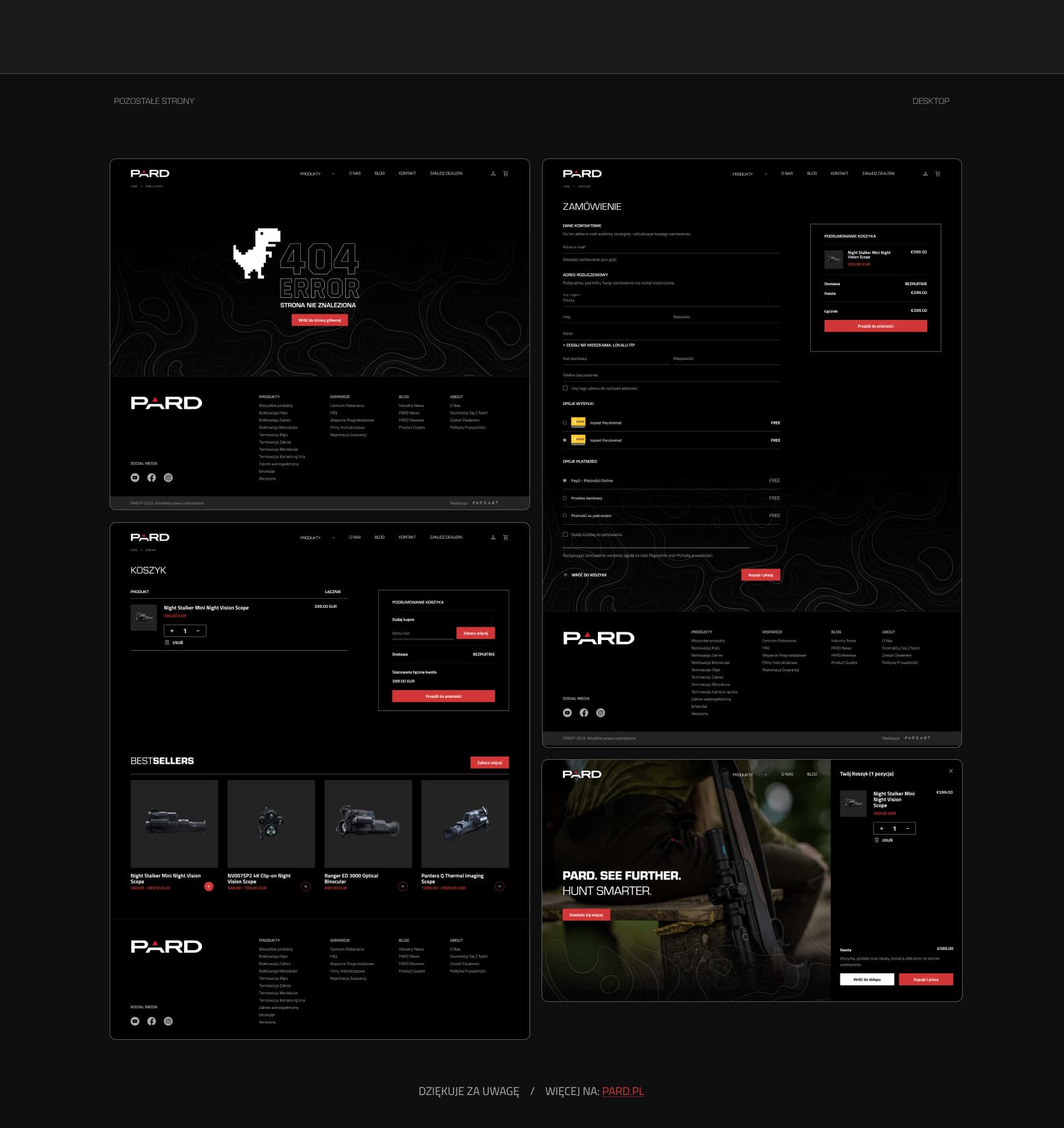 Dla PARD, międzynarodowego producenta urządzeń noktowizyjnych i termowizyjnych, zrealizowaliśmy kompleksowy projekt UX/UI oraz wdrożenie nowoczesnego sklepu internetowego. Celem było stworzenie platformy e-commerce, która w czytelny sposób prezentuje zaawansowaną technologię produktów i jednocześnie buduje wizerunek marki premium.